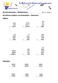 schriftliche Addition Subtraktion, Kenntnisse aus Klasse 4 der Grundschule