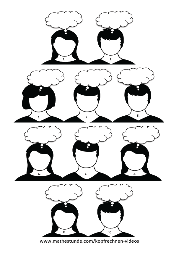 10 Kopfrechenaufgaben nacheinander mit jeweils 10 Sekunden Zeit für die Lösung.