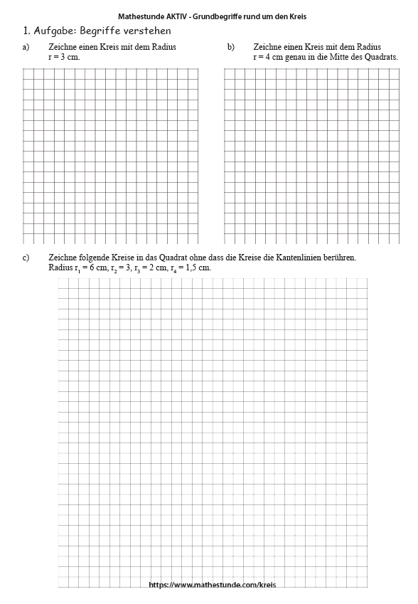 Wichtiger Hinweis zum Ausdrucken der Übungsblätter zum Kreis: