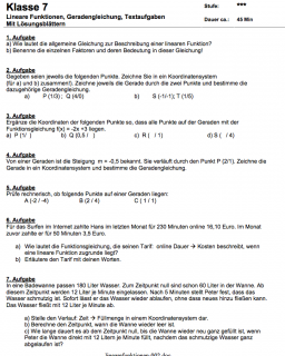 Lineare Funktionen Aufgabenblatt - Klassenarbeit II über 45 Minuten
