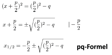 Nachdem wir die Wurzel gezogen haben und nur noch x auf einer Seite steht, erhalten wir die PQ-Formel.